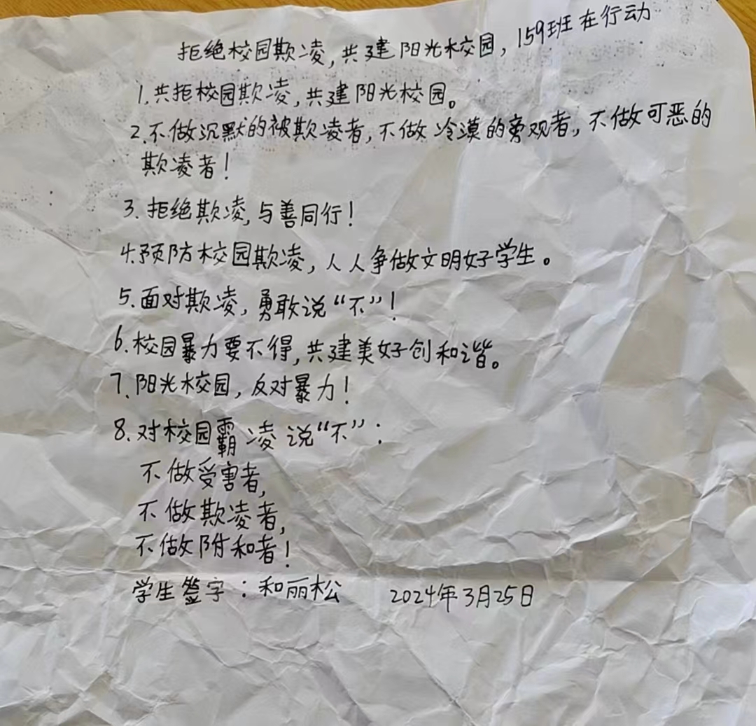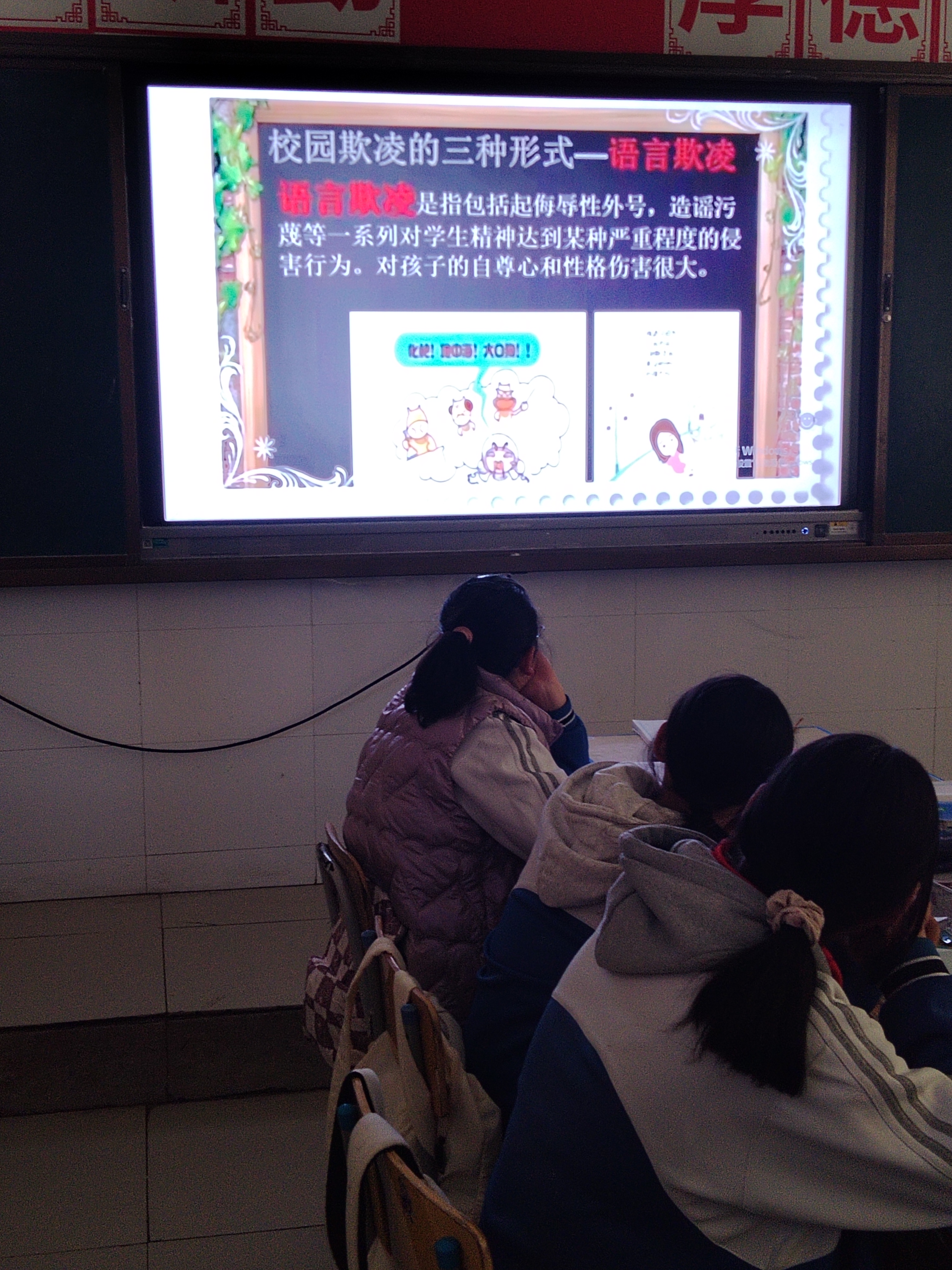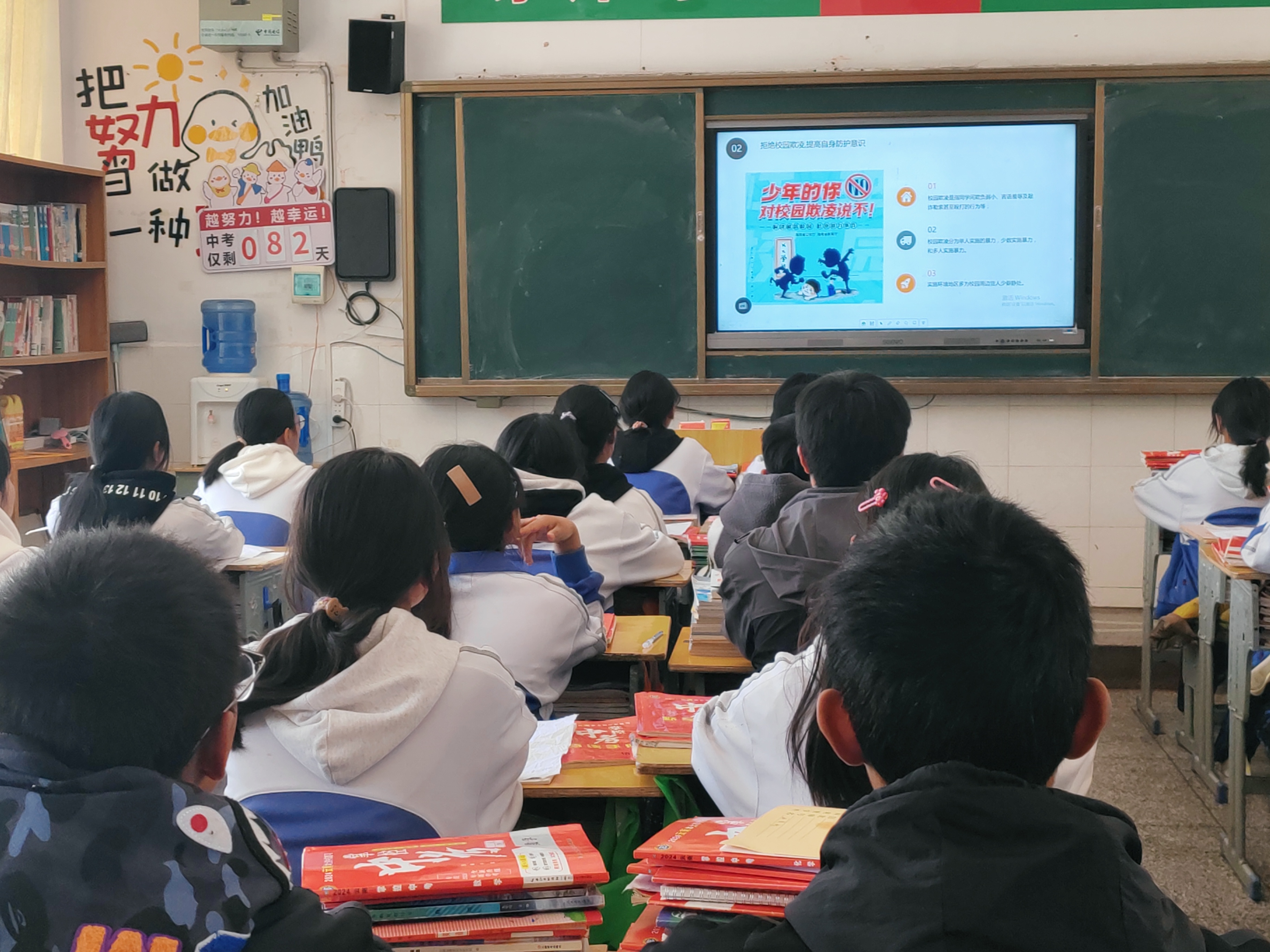 教室里,老師組織白沙中學(xué)的孩子們開展了一堂以“校園防欺凌”為主題的主題班會(huì),不僅讓孩子們拒絕做一名施暴者,更教育孩子們?nèi)绾胃玫乇Wo(hù)自己。