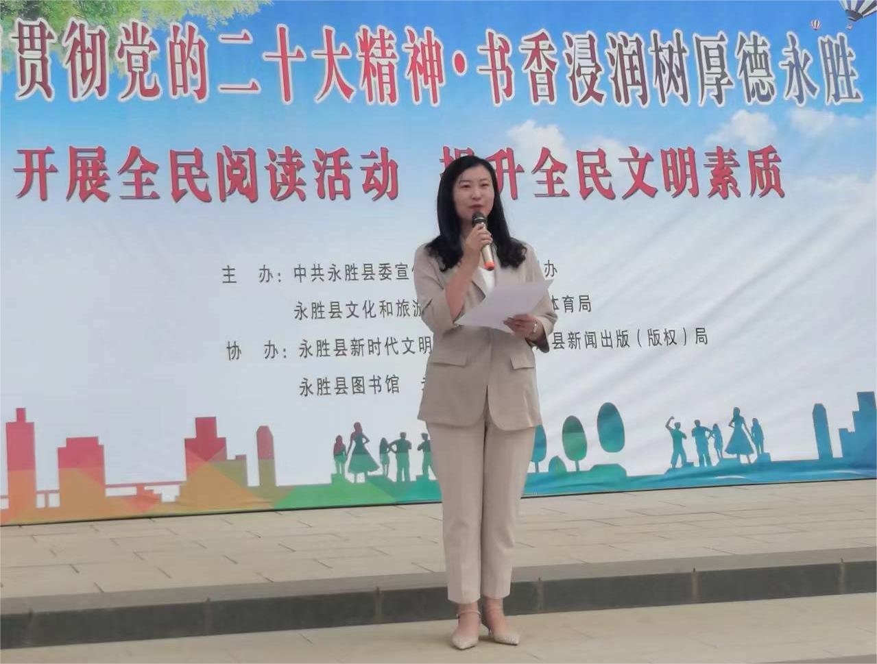 今年永勝縣制定了閱讀計(jì)劃,要求所有縣直部門都要組織干部職工輪流到新時(shí)代文明實(shí)踐中心開展讀書活動(dòng),到現(xiàn)在為止,已經(jīng)開展了兩場(chǎng)。接下來將開展3場(chǎng)讀書活動(dòng),目前正在籌劃“4.23”全民閱讀活動(dòng)及圖書服務(wù)宣傳周活動(dòng)。