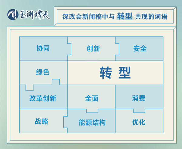 深改會的新聞稿中,伴隨“綠色轉(zhuǎn)型”出現(xiàn)的,還有一連串“轉(zhuǎn)型”——全面轉(zhuǎn)型、協(xié)同轉(zhuǎn)型、創(chuàng)新轉(zhuǎn)型、安全轉(zhuǎn)型;同時還涉及了支撐綠色轉(zhuǎn)型的“消費轉(zhuǎn)型”,以及財稅、金融、投資、價格政策和相關市場化機制等政策體系的健全。