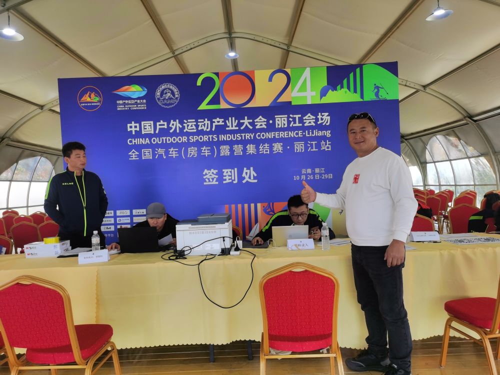 孔亞在全國汽車(房車)露營集結(jié)賽·麗江站比賽簽到處簽到。(供圖)