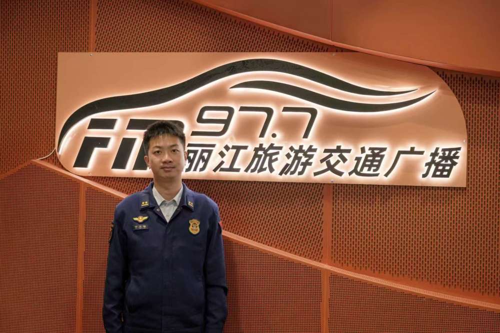 12月18日,麗江市消防救援支隊(duì)全媒體中心主任付文皓走進(jìn)FM97.7直播間。(供圖)