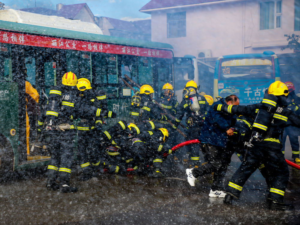 10月31日,支隊(duì)在麗江公交公司開(kāi)展滅火演練及消防安全培訓(xùn)。(供圖)