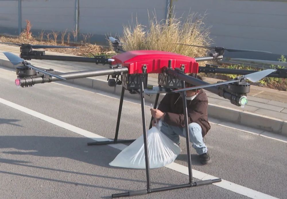 無人機小組工作人員在掛水袋。(麗江融媒記者 趙麗軍 攝)