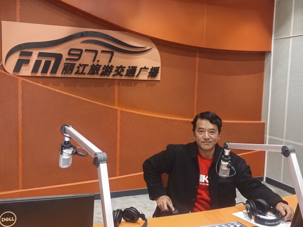 2月14日,玉龍縣黃山街道文化旅游和廣播電視服務(wù)中心主任和曉江做客麗江旅游交通廣播直播間。(梁國宏 攝)