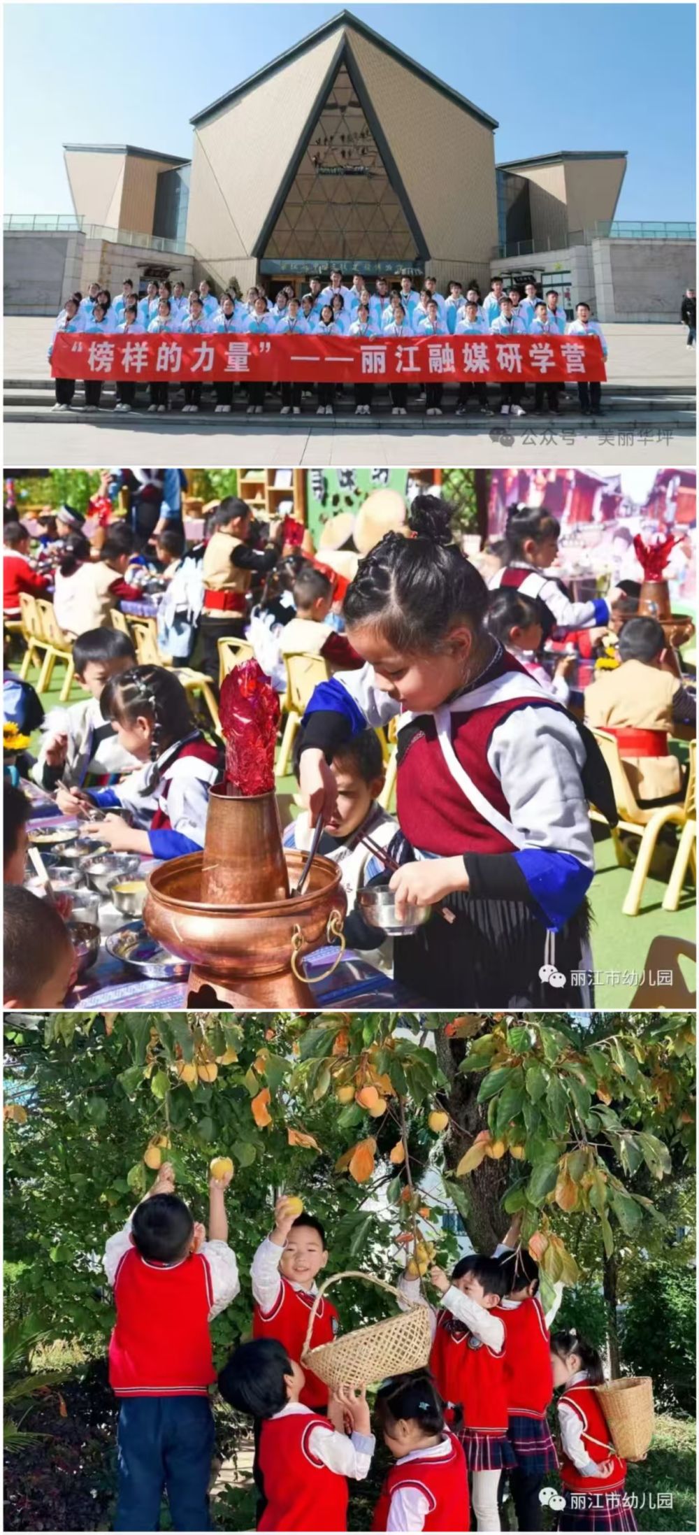 上圖麗江市推動學(xué)校教育走出課堂、走入實踐開展勞動研學(xué)教育,中、下圖麗江市幼兒園將課間活動和民族美食課程教育緊密結(jié)合。(供圖)