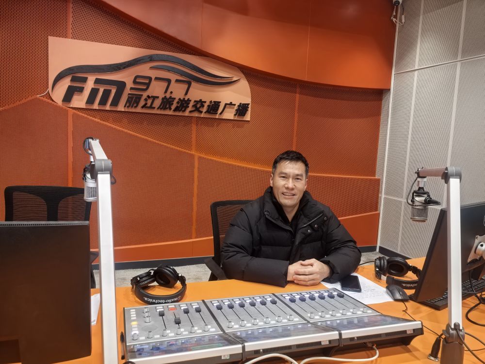 2月26日,麗江市農(nóng)業(yè)農(nóng)村局經(jīng)濟作物工作站站長李春華做客麗江旅游交通廣播直播間。(梁國宏 攝)