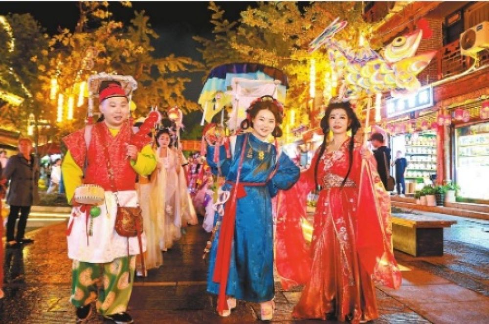 在滇池之畔的昆明融創(chuàng)文旅城,蔚藍(lán)的池水與絢爛的民族服飾交織,空飄熱氣球與咖啡市集同在……夜幕下,游客們手提燈籠,穿梭于云津夜市,與“古代商販”討價(jià)還價(jià),觀看傳統(tǒng)技藝表演,品嘗地道云南小吃。據(jù)了解,“云津夜市”情景演出是環(huán)滇池區(qū)域文旅聯(lián)動(dòng)的重要一環(huán),后海商業(yè)街區(qū)通過(guò)系列演藝活動(dòng),豐富了環(huán)滇池黃金岸線的夜游體驗(yàn)。