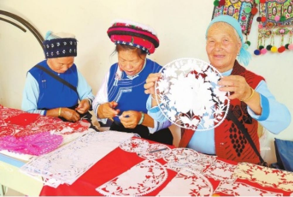 賓川非遺代表性傳承人展示剪紙作品。 通訊員 鄧永鳳 攝