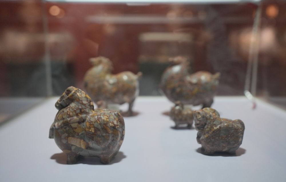 除了厚重的歷史藏品,博物館還藏著讓人眼前一亮的文創(chuàng)驚喜。陳國正以五花石為原料,打造出馬、青蛙、虎等動物造型的文創(chuàng)產(chǎn)品,既融入了納西族傳統(tǒng)信仰與東巴文化,又呼應(yīng)了麗江 “花馬國” 的美譽(yù)。