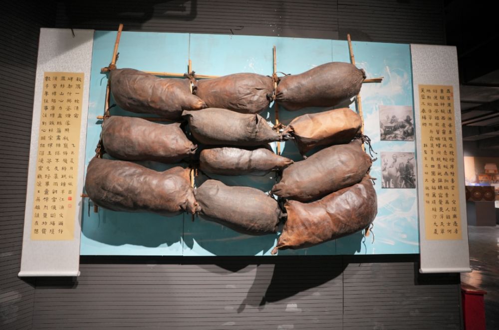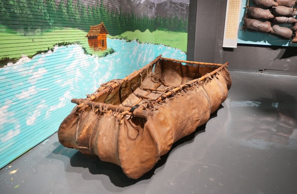 麗江茶馬古道博物館藏品——渡江用的革囊。 ( 麗江融媒記者 李揚(yáng) 攝)