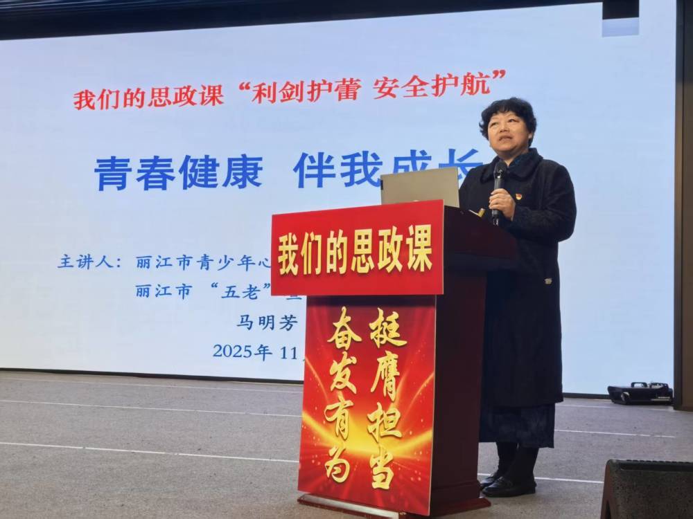 麗江市青少年心理健康服務(wù)中心理事長(zhǎng)馬明芳開(kāi)展《青春健康 伴我成長(zhǎng)》專(zhuān)題講座。(麗江融媒記者 劉曉軍 攝)