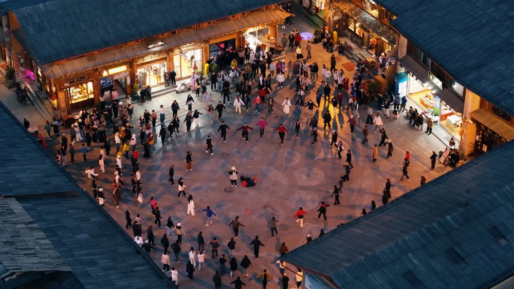 在迪慶藏族自治州獨克宗古城,每當(dāng)夜幕降臨,居民與游客在月光下共舞,不分彼此。這樣的場景在云南隨處可見。這場夜間的文藝聯(lián)歡,為城市注入了活力、促進了消費、增進了和諧,生動詮釋了“主客共享”,成為連接人、城與夜的文化紐帶。