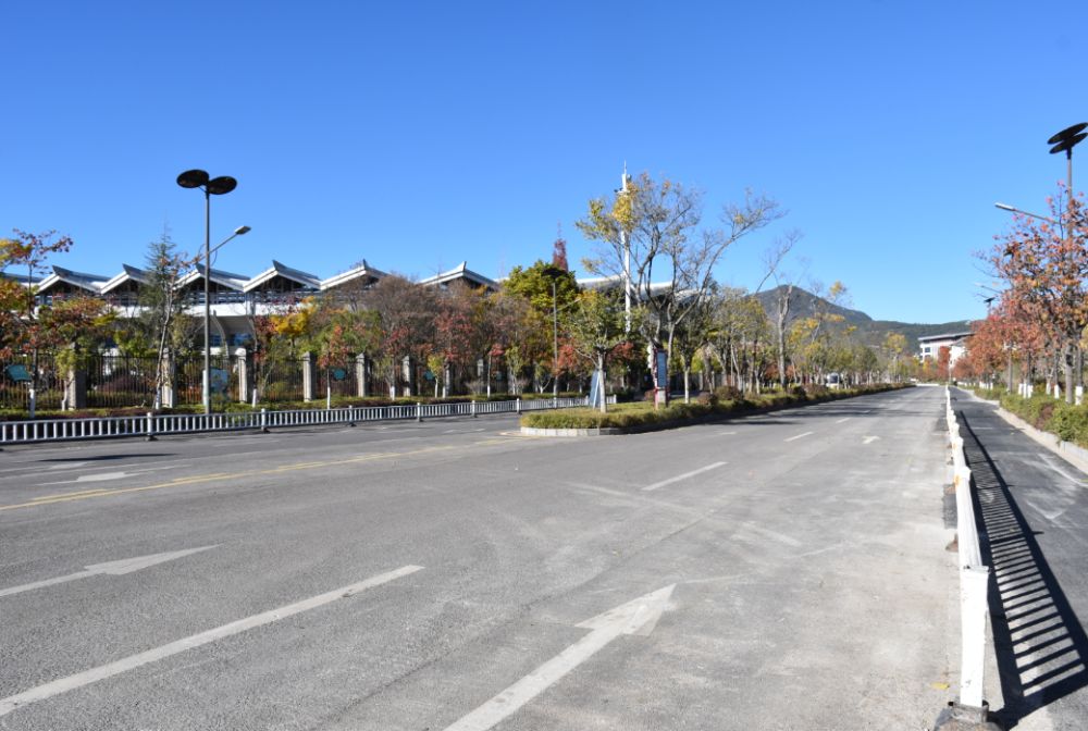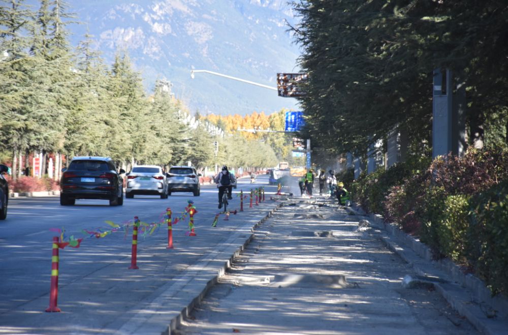 香格里大道體育場(chǎng)路段已經(jīng)進(jìn)入施工收尾階段。 (麗江融媒記者 楊四娟 攝)