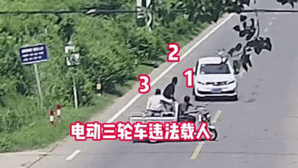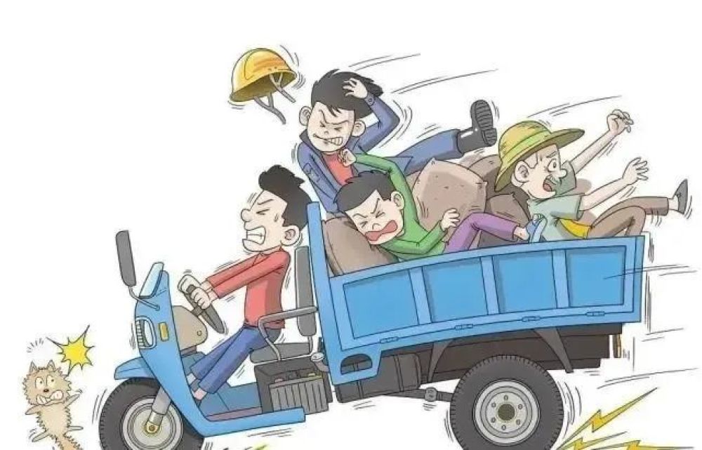 【案例一】一輛載貨三輪車違法運載5人,在下陡坡急彎處發(fā)生側(cè)翻,并與路側(cè)混凝土防護墻碰撞,事故造成3人死亡、2人受傷。(案例來源:廣東交警)
