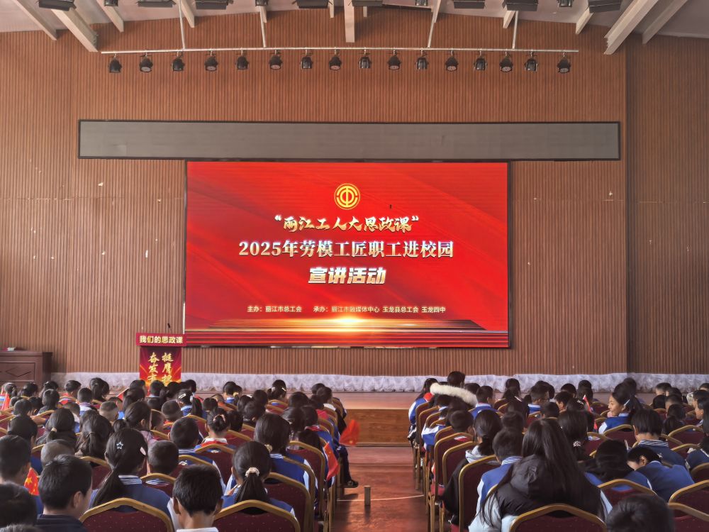 12月8日,由麗江市總工會(huì)主辦,麗江市融媒體中心、玉龍縣總工會(huì)承辦的2025年麗江市“勞模工匠職工進(jìn)校園”宣講活動(dòng)——“麗江工人大思政課”走進(jìn)玉龍縣第四中學(xué),向全校800余名師生開展思政教育宣講,深入推動(dòng)勞模精神、勞動(dòng)精神、工匠精神融入校園教育,充分發(fā)揮工會(huì)思政育人核心效能,助力青少年堅(jiān)定理想信念、涵養(yǎng)責(zé)任擔(dān)當(dāng)。