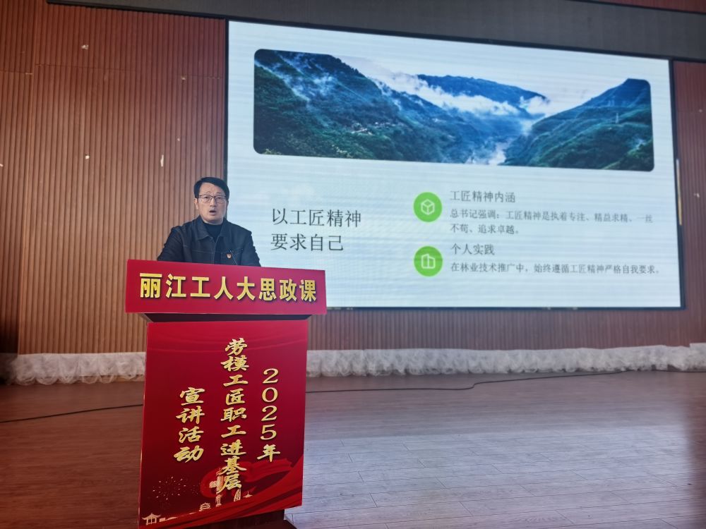 玉龍縣林業(yè)科技推廣站高級(jí)工程師、站長(zhǎng)、玉龍縣總工會(huì)兼職副主席洪長(zhǎng)龍以作專題宣講。他結(jié)合自身多年基層工作實(shí)踐,系統(tǒng)闡釋勞模精神、勞動(dòng)精神、工匠精神的核心要義,深入解讀三種精神的時(shí)代價(jià)值與實(shí)踐意義,為青少年傳遞正向成長(zhǎng)指引。洪長(zhǎng)龍表示,希望同學(xué)們將三種精神內(nèi)化于心、外化于行,融入日常學(xué)習(xí)生活,以勤奮務(wù)實(shí)態(tài)度錘煉過(guò)硬本領(lǐng),用不懈奮斗書寫青春華章。