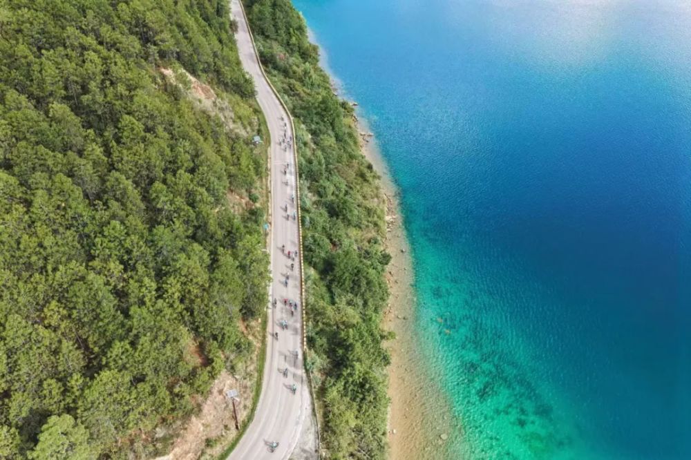 向山而行·麗江山地自行車(chē)賽在美麗的瀘沽湖畔舉行。(市教體局 供圖)