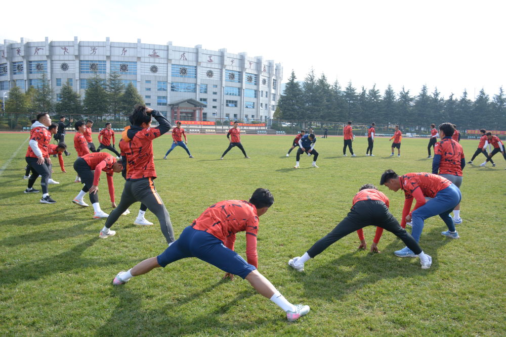 滇超聯(lián)賽麗江隊正在熱身訓練。(麗江融媒記者 呂坤釗 攝)