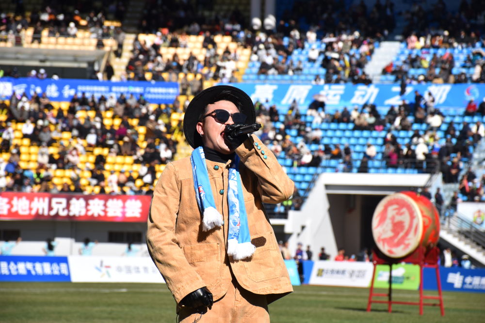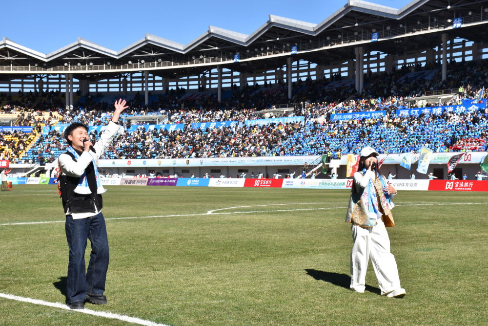 歌手麗江小智、麗江小樣緊接著登場。專為文山球迷獻(xiàn)唱的《三七花兒開》暖意融融——以文山地理標(biāo)志的三七花為紐帶傳遞兩地情意;經(jīng)典曲目《彩云之南》旋律悠揚,將云南山水之美娓娓道來。“文山球迷遠(yuǎn)道而來,希望用歌聲表達(dá)歡迎,也讓大家通過旋律感受麗江的魅力?!丙惤≈钦f。