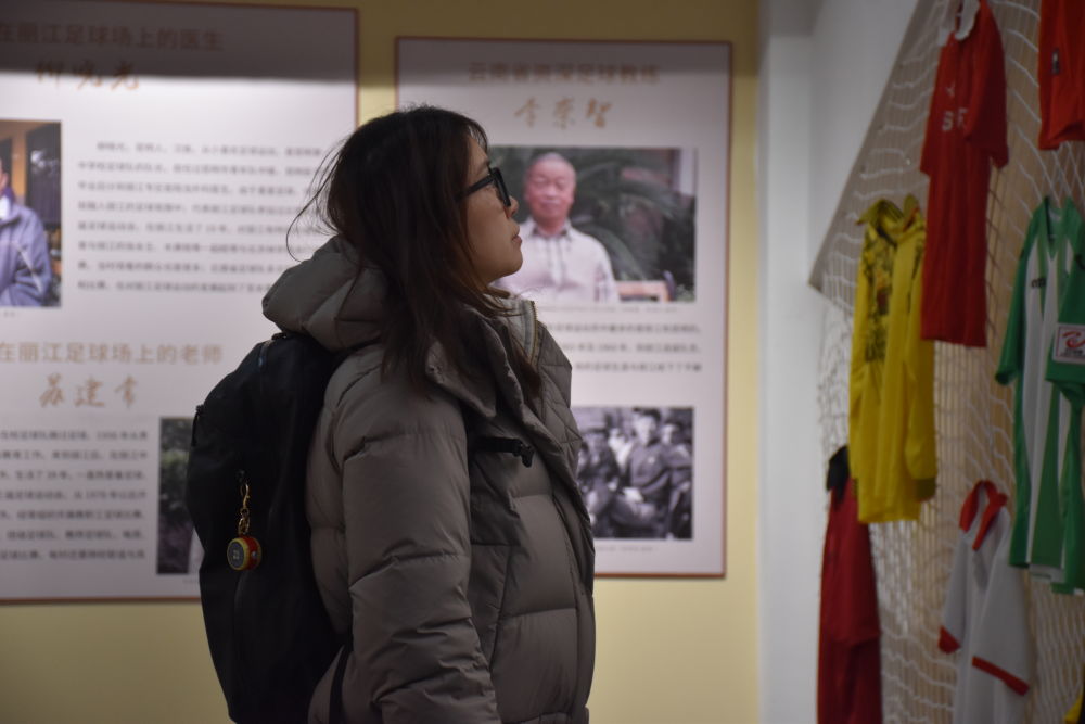 市民駐足觀看麗江足球記憶展。麗江融媒記者 楊四娟 攝