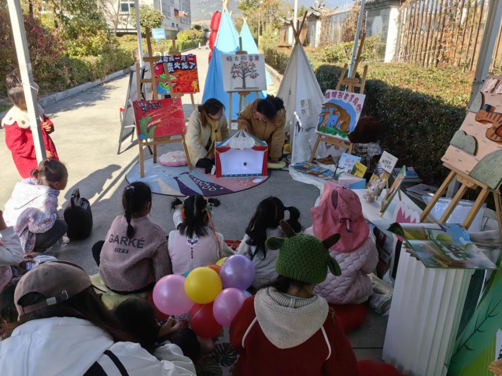 麗江市少年兒童圖書(shū)館“閱讀之光” 圖書(shū)市集活動(dòng)現(xiàn)場(chǎng),老師正在給孩子們沉浸式講故事。(麗江市少年兒童圖書(shū)館 供圖)