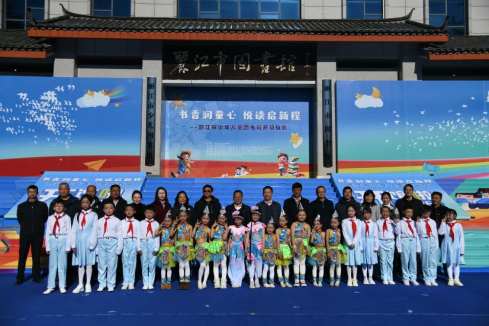 2025年12月28日,麗江市少年兒童圖書(shū)館開(kāi)館儀式部分嘉賓合影留念。(麗江市少年兒童圖書(shū)館 供圖)