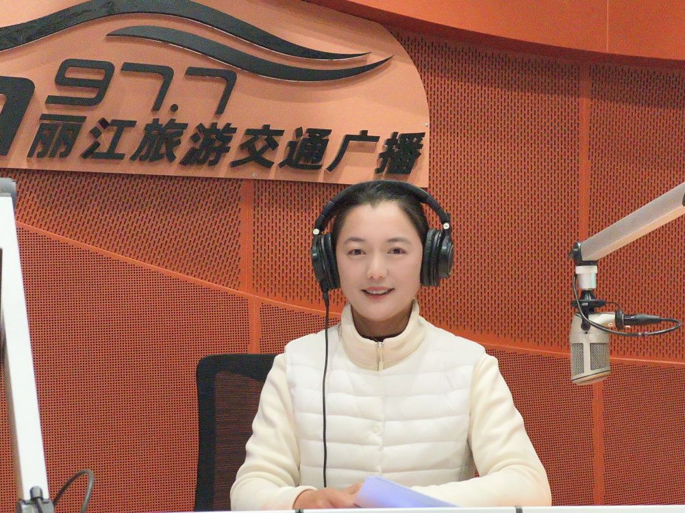 1月7日,麗江市圖書(shū)館(麗江市少年兒童圖書(shū)館)辦公室主任趙艷萍做客FM97.7麗江旅游交通廣播直播間。(麗江融媒記者 楊超 攝)