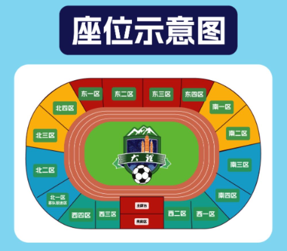 大理州體育中心體育場座位區(qū)分布圖,以購票通道示意為準(zhǔn)。(供圖)