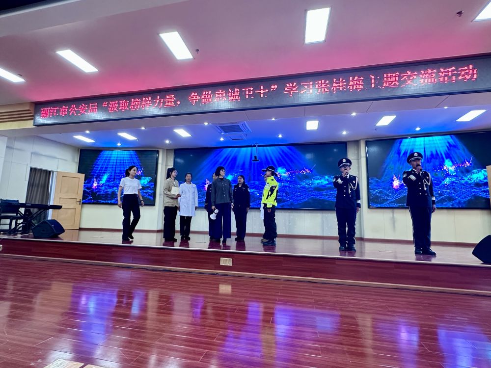 當(dāng)天下午還舉行了“汲取榜樣力量 爭(zhēng)做忠誠(chéng)衛(wèi)士”學(xué)習(xí)張桂梅主題交流活動(dòng)。市公安局民輔警代表共聚一堂,通過(guò)詩(shī)歌朗誦、舞蹈、合唱、情景劇等多種形式,圍繞張桂梅堅(jiān)守教育一線、無(wú)私奉獻(xiàn)的先進(jìn)事跡,結(jié)合公安工作實(shí)際分享學(xué)習(xí)感悟。