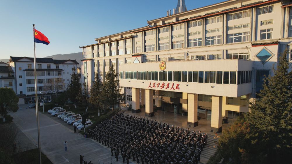 1月9日,升旗儀式在麗江市公安局大樓前舉行。(通訊員 張維清 攝)