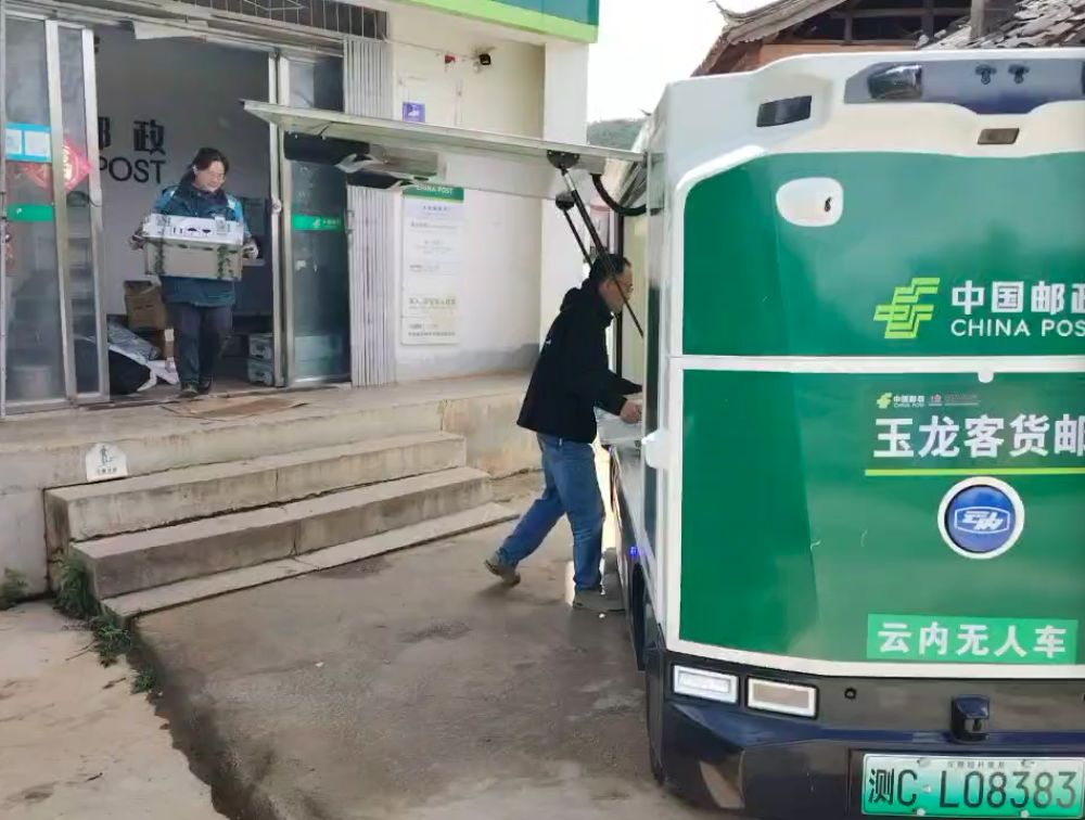 郵政智能配送無人車在城鄉(xiāng)穿梭。(中國郵政集團有限公司麗江市分公司 供圖)