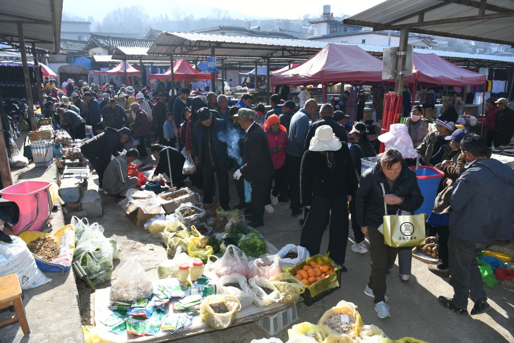 一大早,集市便已熱鬧非凡。放眼望去,人群如涌動的潮水,摩肩接踵?!敖裉熠s集真熱鬧,感覺春節(jié)就在眼前了。”村民姚正元說,一年中無論農(nóng)忙農(nóng)閑,集市上的四時之景總是熙熙攘攘,充滿了濃濃的煙火氣。
