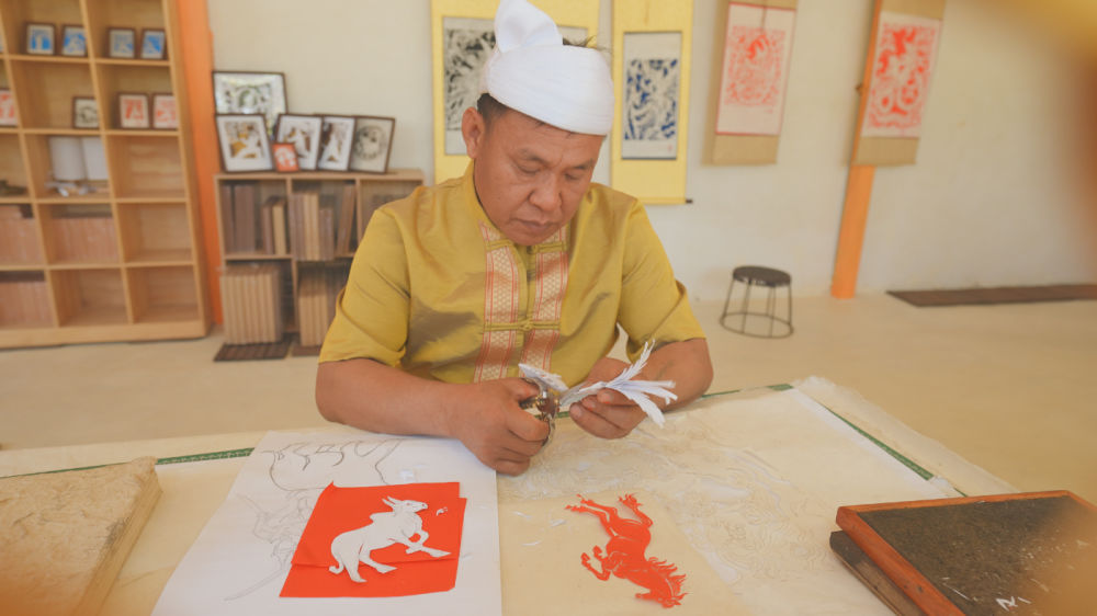 近日,記者走進(jìn)臨滄市耿馬傣族佤族自治縣孟定鎮(zhèn)傣族剪紙傳承人王國(guó)明工作室時(shí),他正專注于手中的新作?!凹艏埌。釉谏?,魂也在生活?!蓖鯂?guó)明一邊端詳作品一邊笑著說。對(duì)他而言,每年春節(jié)前創(chuàng)作生肖主題剪紙,早已超越了一項(xiàng)簡(jiǎn)單的習(xí)俗,成為融入生命的情感儀式和文化堅(jiān)守。“這不僅僅是張窗花,它是咱中國(guó)人過年那份紅火勁兒,是團(tuán)圓桌上少不了的那道‘文化菜’。貼上它,年味才算真正飄進(jìn)了家門?!?/span>