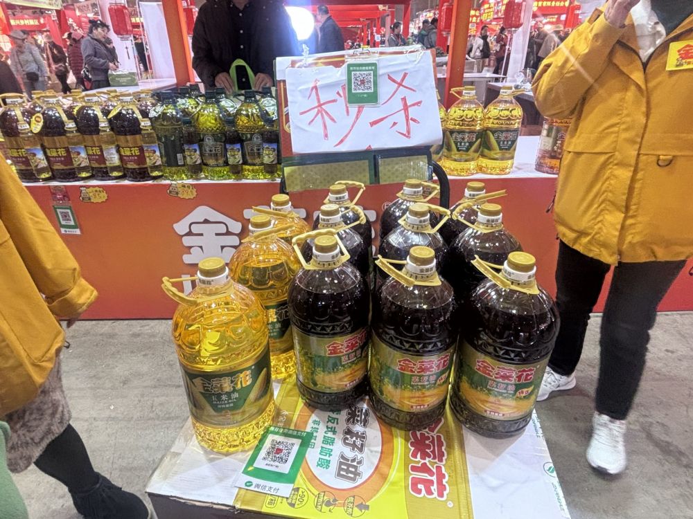 不僅是特色農(nóng)產(chǎn)品,米面糧油等日用消費品的攤位前也同樣熱鬧。一位售賣菜籽油的工作人員介紹:“展會期間,他們售賣的米面糧油等產(chǎn)品,平均比外面的市場價便宜10多元,這些都是市民的日用消耗品,多買一些既劃算又省心,總體來看每天的銷量都很不錯。”