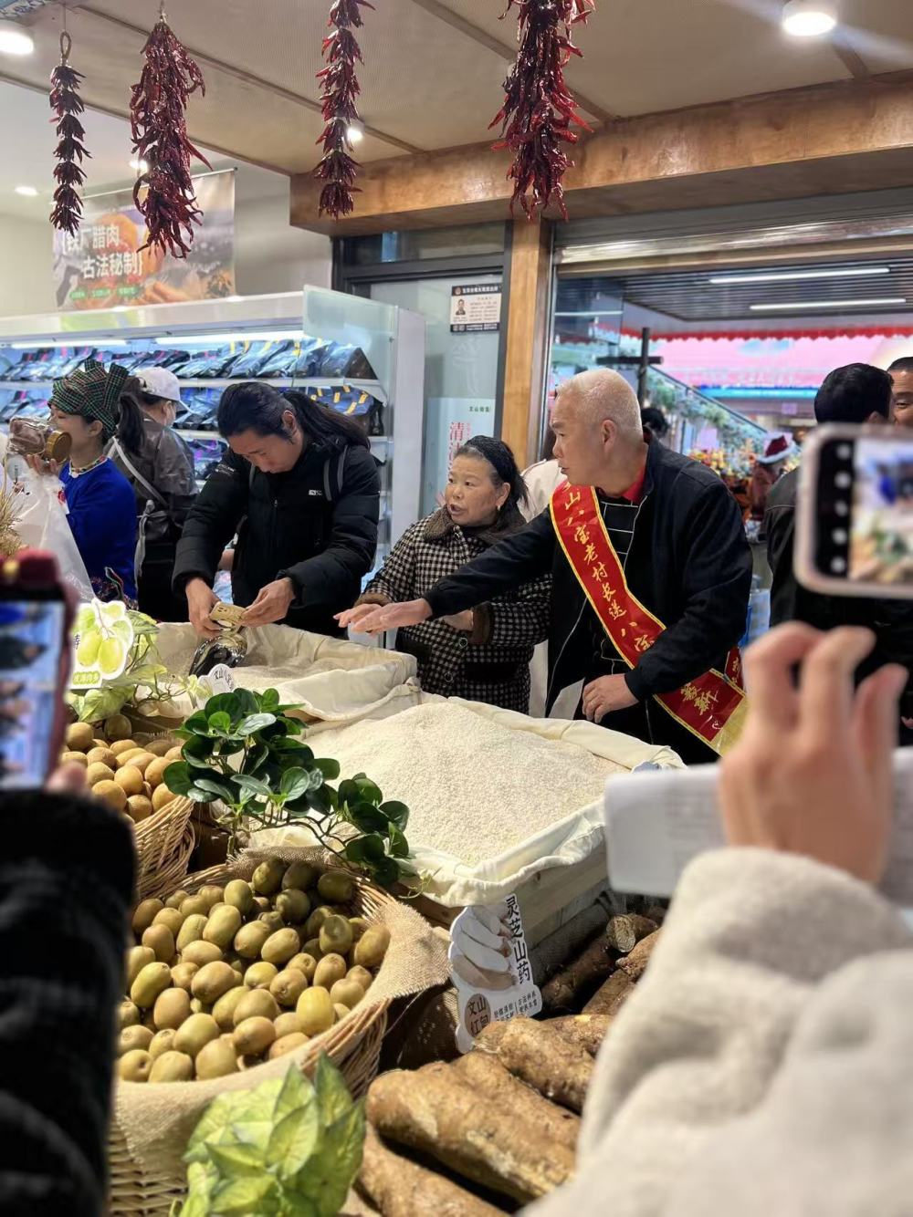 “文山物集”的鋪子前,圍觀品嘗特色農(nóng)產(chǎn)品的市民絡(luò)繹不絕