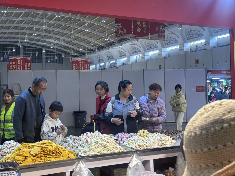 走進博覽會展區(qū),紅彤彤的燈籠與福字掛滿各個角落,濃濃的年味撲面而來,香腸臘肉色澤鮮亮,散發(fā)著濃郁的煙熏香,堅果、糖果整齊碼放,宣威火腿、尋甸牛干巴、昭通天麻、堅果等云南特色好物應(yīng)有盡有,叫賣聲、議價聲、歡笑聲交織在一起,構(gòu)成了一幅熱鬧的新春消費畫卷。