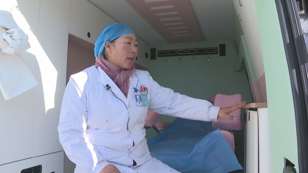寧蒗縣婦幼保健院婦女保健部部長楊曉虹正向記者介紹篩查車的功能。(麗江融媒記者 張麗瑤 攝)
