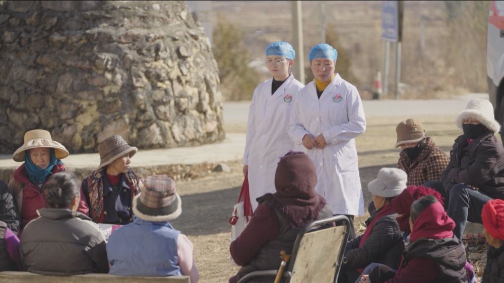 醫(yī)務(wù)人員在村頭向大家普及篩查知識(shí)。(“兩癌”綜合防治項(xiàng)目組 供圖)