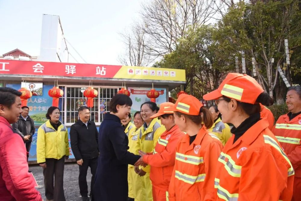 2月14日,浦虹、聶金輝在麗江古城檢查旅游服務接待工作,看望慰問公安、消防、環(huán)衛(wèi)等一線工作者。(麗江融媒記者 和麗芬 攝)