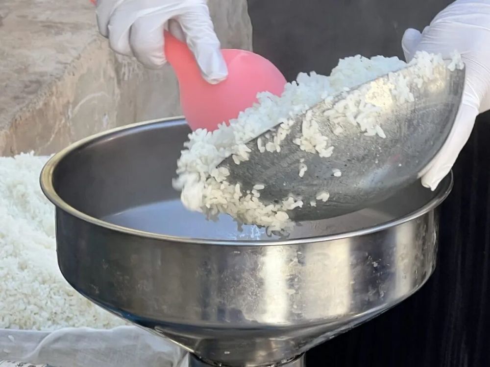 想要做出正宗的寧蒗餌塊,選材是第一道講究。在永寧鎮(zhèn),當?shù)厝吮剡x自家當年新收的優(yōu)質(zhì)粳米,淘洗干凈后充分浸泡,吸足水分的米粒顆顆飽滿,為餌塊的軟糯口感打下基礎。隨后,將米粒入甑蒸制,大火持續(xù)烹煮,潔白的蒸汽從甑縫間緩緩升起,濃郁的米香瞬間彌漫開來,這便是餌塊最動人的“開場香氣”。