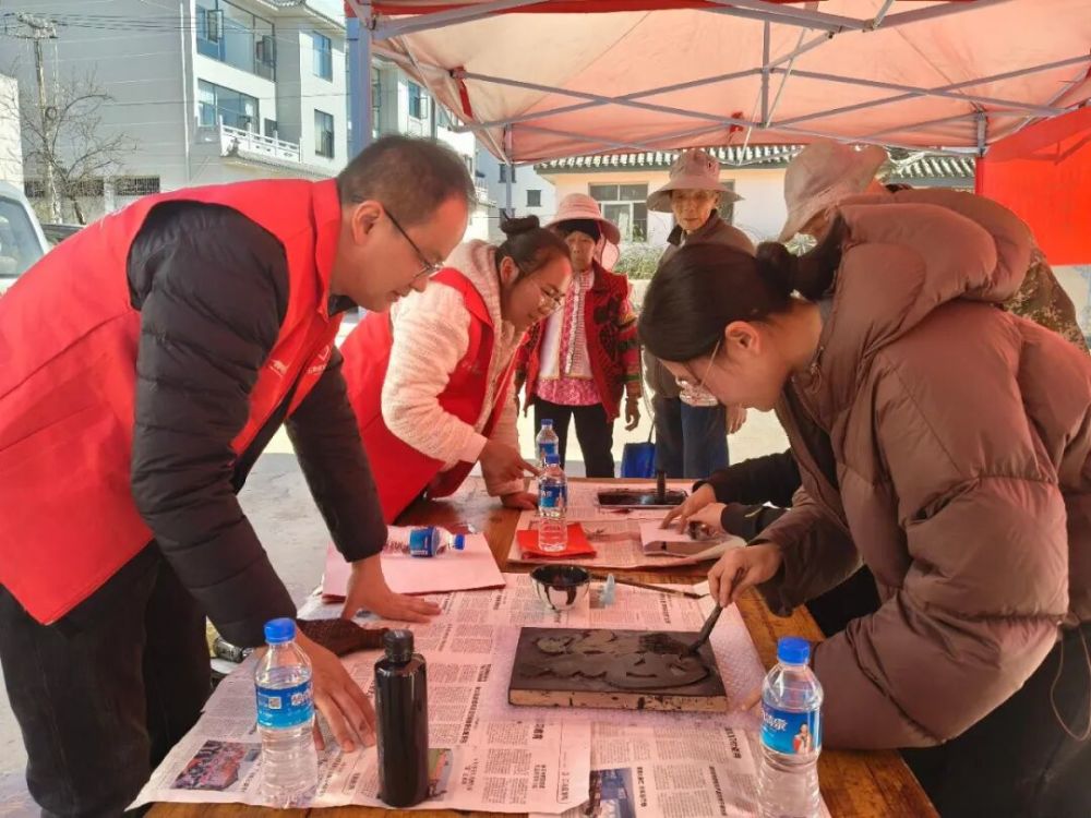 在雕版拓印體驗(yàn)區(qū),“康熙御筆福字”“年年有魚”兩塊雕版拓印吸引不少群眾駐足參與。在工作人員的耐心指導(dǎo)下,大家親手體驗(yàn)上墨、鋪紙、敲打、揭印等完整流程,近距離感受非遺技藝的獨(dú)特魅力。