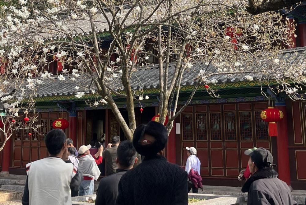目前,黑龍?zhí)豆珗@的白玉蘭已進入最佳觀賞期,市民游客可前往游園賞景,在古建繁花間邂逅麗江早春詩意,共赴一場春日之約。