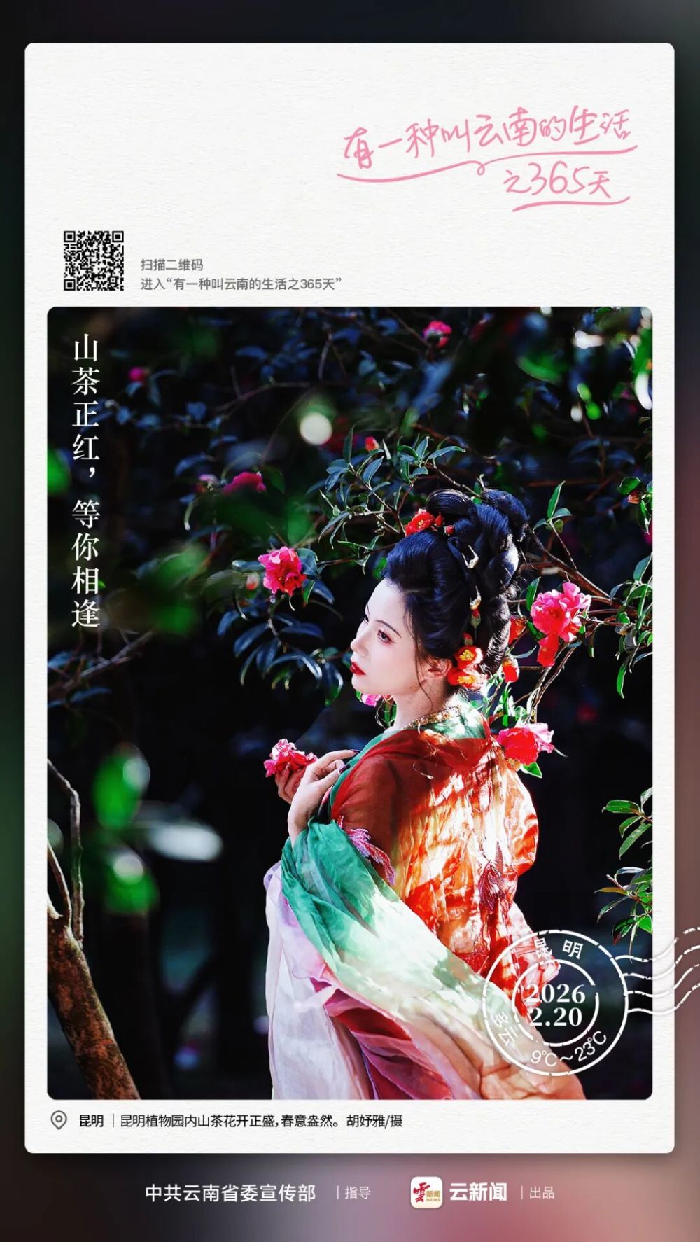 正月初四,年味正酣。在這個(gè)迎祥納福的日子里,昆明植物園的山茶花如約綻放,為春城添上了一抹醉人的緋紅。