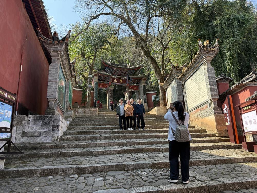 新春時(shí)節(jié),素有“秀甲南滇”美譽(yù)的秀山,古木與繁花相映,在茶花園,各色茶花次第開放,朱紅粉白綴滿枝頭,與亭臺(tái)樓閣、楹聯(lián)碑刻相映成趣,構(gòu)成雅致景致;園內(nèi),通海洞經(jīng)音樂(lè)定時(shí)展演,樂(lè)師輕撥絲弦,古曲悠揚(yáng)空靈,讓游客沉浸式感受百年古樂(lè)韻味。