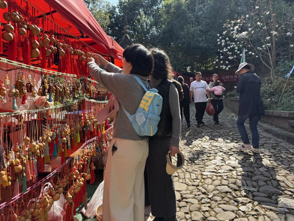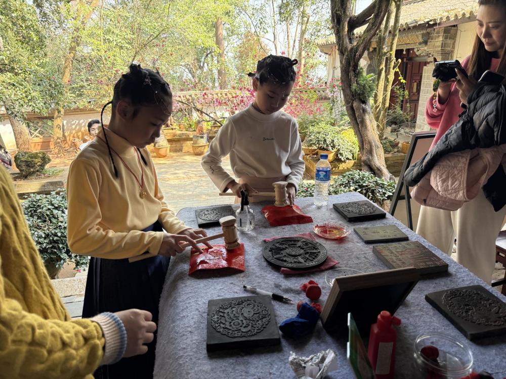 在拓印體驗(yàn)區(qū),游客在工作人員指導(dǎo)下,將宣紙覆于古匾碑刻之上,經(jīng)上墨、捶拓等工序,親手完成一幅拓片,在指尖觸摸“匾山聯(lián)?!钡臍v史文脈。不少省外游客結(jié)伴而來(lái),賞花海、聽古樂(lè)、做拓印,在自然與人文交融中度過(guò)別樣新春。