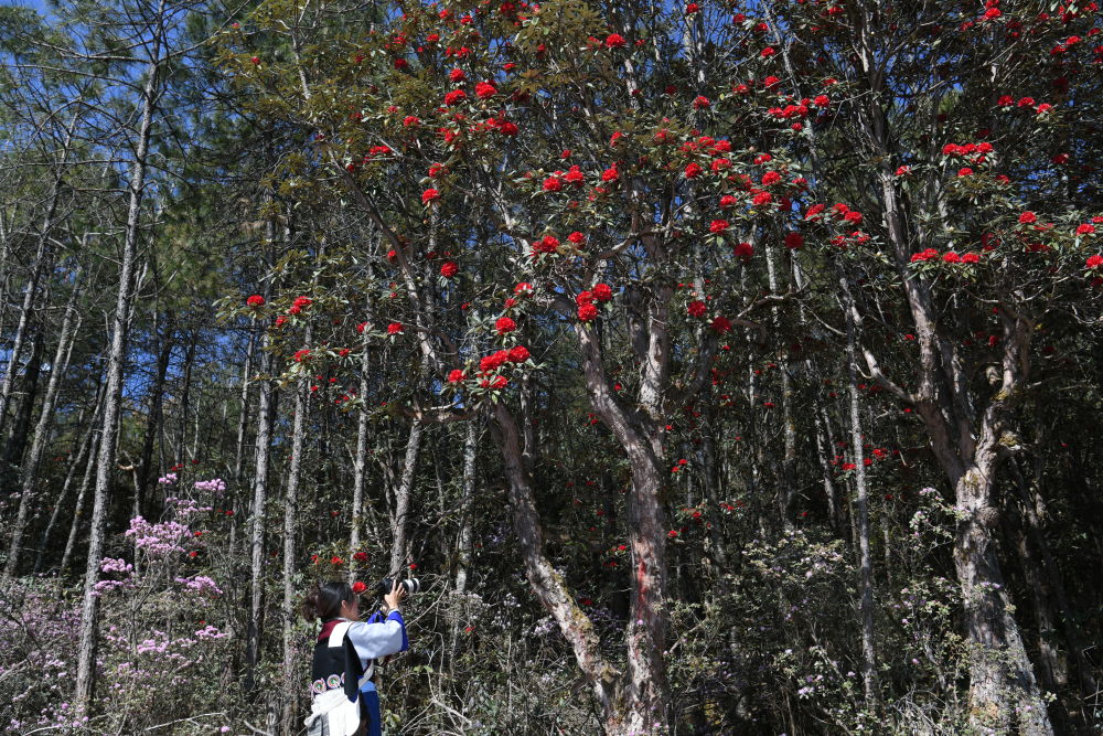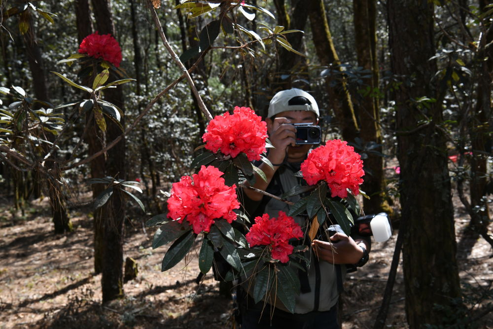 攝影師在拍攝杜鵑花。(麗江融媒記者 趙慶祖 攝)