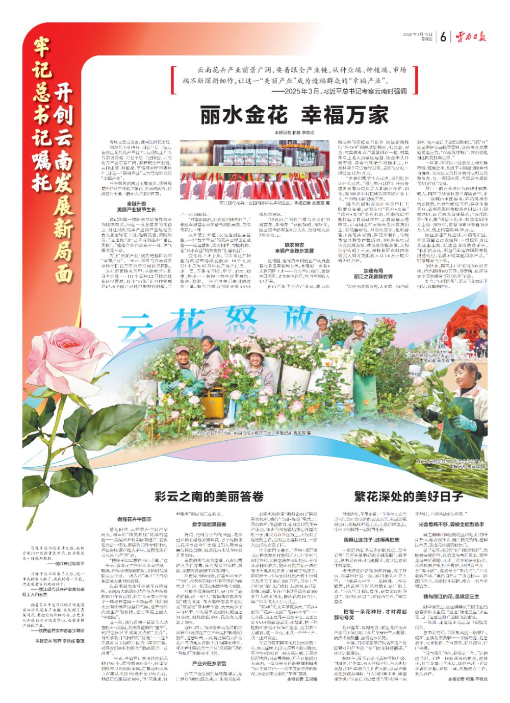 2025年3月19日,習(xí)近平總書記走進麗江現(xiàn)代花卉產(chǎn)業(yè)園,與現(xiàn)場工作人員親切交流。習(xí)近平總書記指出,云南花卉產(chǎn)業(yè)前景廣闊,要著眼全產(chǎn)業(yè)鏈,從種業(yè)端、種植端、市場端不斷深耕細作,讓這一“美麗產(chǎn)業(yè)”成為造福群眾的“幸福產(chǎn)業(yè)”。