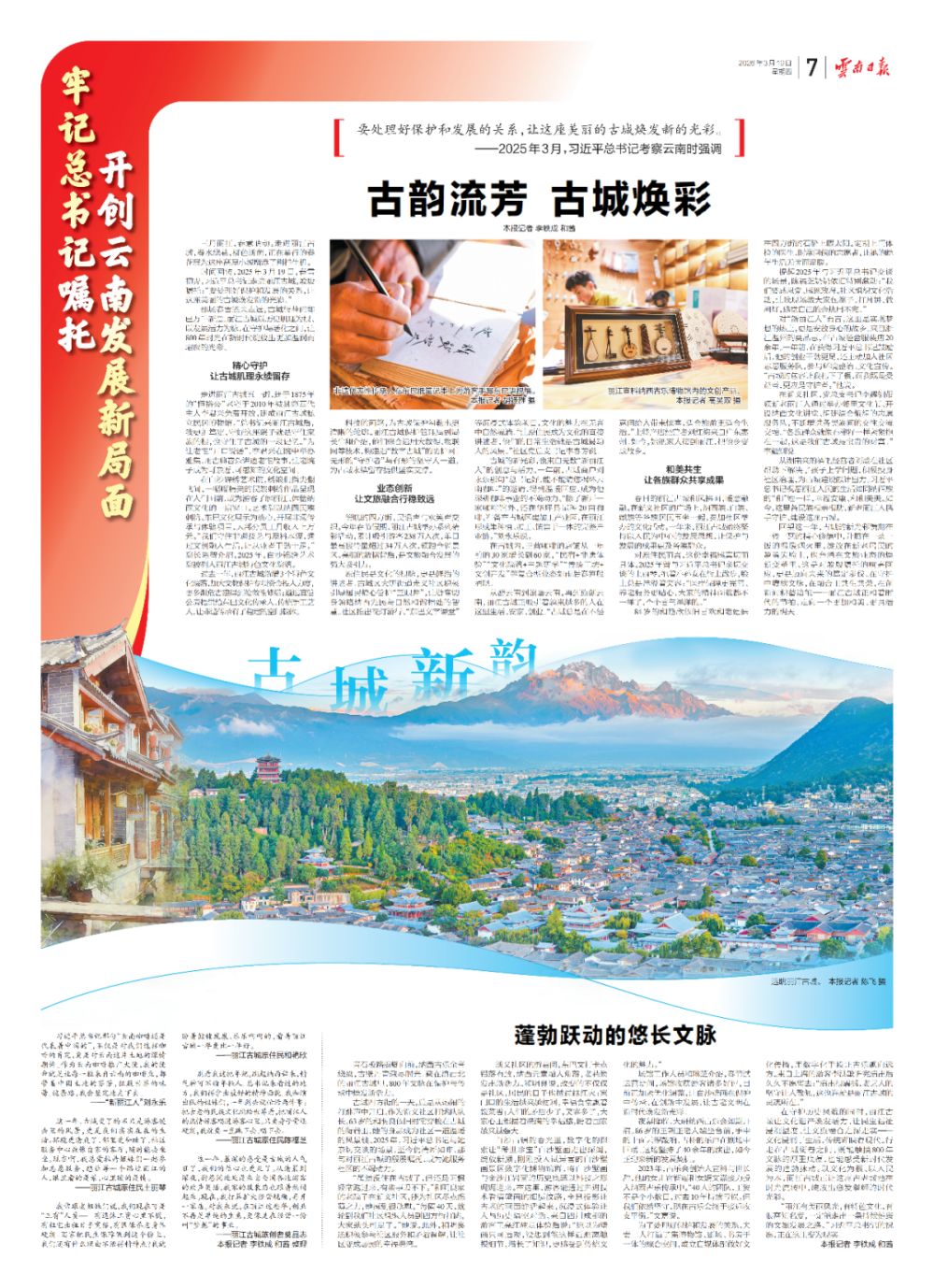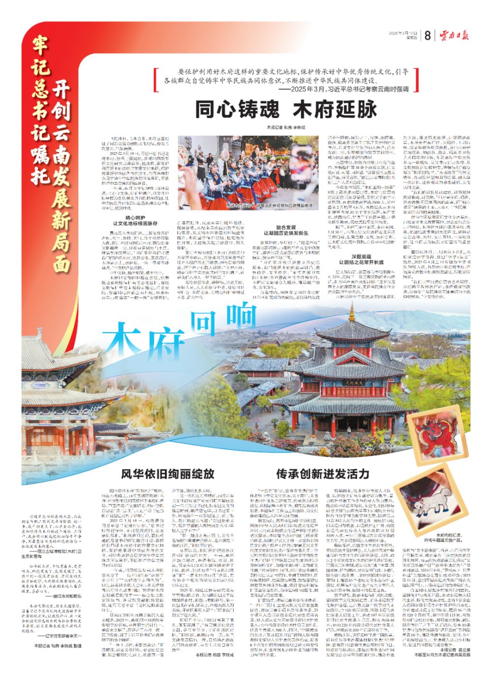 一年來,麗江市牢記囑托、感恩奮進,匠心守文脈,創(chuàng)新護遺產(chǎn),將文化地標厚植為各族群眾共有的精神家園,讓中華民族共同體意識在各族群眾心中根深干壯、枝繁葉茂。