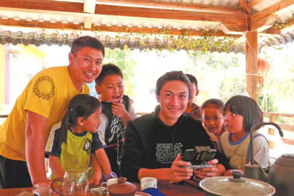 (咖啡專家陳單奇在孟連傣族拉祜族佤族自治縣與孩子們合影)