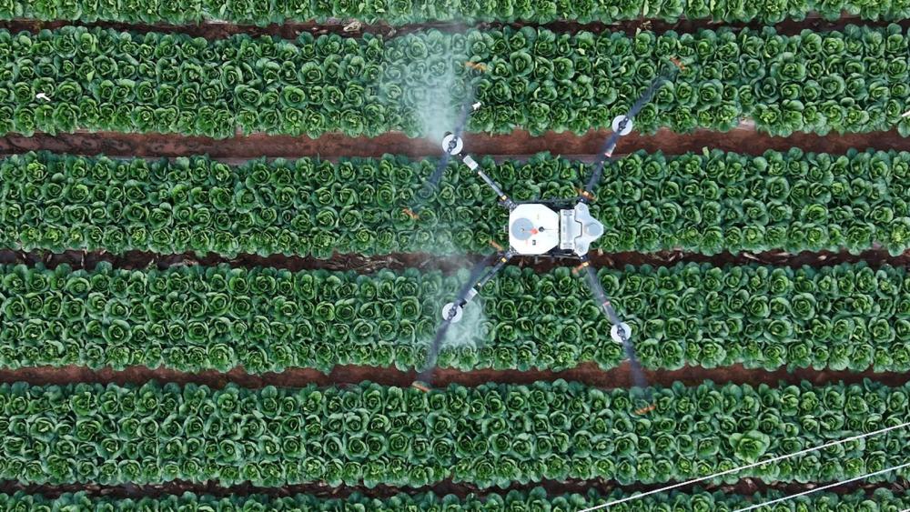 “農(nóng)業(yè)農(nóng)村局不僅用無人機(jī)幫我們高效防治蟲害,還現(xiàn)場講解不同蔬菜蟲害的防治方法,無人機(jī)噴得又勻又細(xì),不僅蟲子死得干凈,用的農(nóng)藥是無化生防的,對人體無害,沒有農(nóng)殘,種出來的菜品相好、品質(zhì)高,吃著也更安全。”通海原態(tài)蔬菜專業(yè)合作社負(fù)責(zé)人何來說。